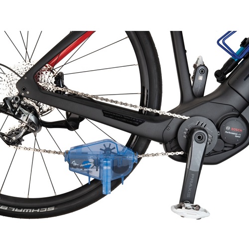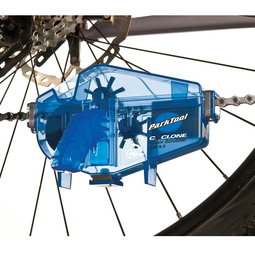 Clean bicycle chains quickly, easily, and effectively without the hassle and mess of removing the chain from the bike. The CM-5.3 uses an extra-large solvent reservoir and a series of four rotating brushes to get chains sparkling clean inside and out. A magnet at the bottom of the CM-5.3's solvent reservoir draws away particles scrubbed from the chain, effectively keeping them from being redistributed on the chain during cleaning. The durable sponge material draws solvent from the chain as it exits the CM-5.3, reducing drips and mess.