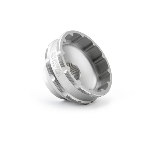 A precision CNC-machined aluminum tool for the installation and removal of select threaded bottom brackets with 12-notch tool fittings, including SRAM® BSA DUB®, Race Face® Cinch®, Rotor® BSA30, and others. Manufactured in-house by Park Tool, anodized for easy identification and featuring a ratchet/torque wrench-compatible 3/8" drive.
