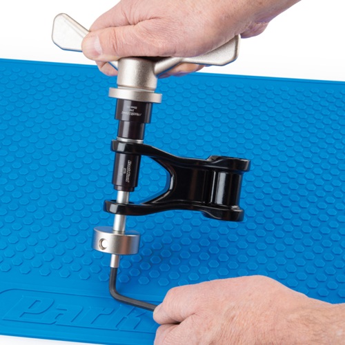 NOTE: For bearing extraction, the SBK-1 requires a minimum of 3 mm of flat linkage structure outside the bearing to support the extractor cup/drift. For bearings without this flat structure, consider using the Park Tool SHX-1 Slide Hammer Bearing Extractor.
