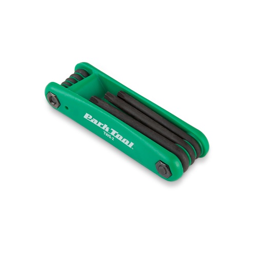 The TWS-2 combines nine Torx®-compatible drivers into one convenient fold-up tool, for the star-shaped fittings that are becoming increasingly common on bicycle components such as disc brake rotors, levers, derailleurs, and stems. The wrenches are made from heat-treated industrial tool steel for long life, with chamfered tips for a perfect fit. The multi-position composite handle is comfortable, lightweight, slip-resistant, and 40% stronger than steel handles.