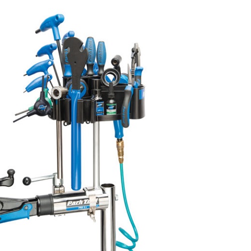 Keep frequently-used tools within reach on top of any Park Tool professional repair stand. The TK-4 features specifically-designed slots and holders for hex wrenches, screwdrivers, pliers and more, as well as multiple trays and cavities for small parts and supplies. The TK-4 rotates for easy access from any angle and is molded from a durable composite material.