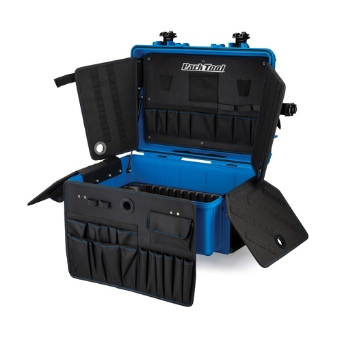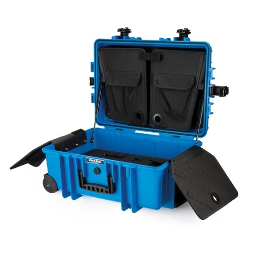 Built to withstand the punishment of travel and constant use and molded from impact-resistant polypropylene, the BX-3 is a professional-grade toolbox for the professional bike mechanic. Features folding dual-sided pallets with 70% more surface area than the BX-2.2 and hundreds of custom-designed loops and pockets. The sturdy outer shell is dust and water resistant, with an air pressure compensation valve for air travel. The lid features gas-assisted struts for easy opening even when fully loaded. Easily transportable with the integrated wheels and extendable handle, this case was designed with the help of some of the world’s best bike mechanics for optimal form, function and longevity.