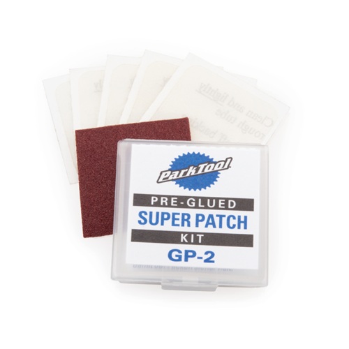 A convenient countertop display box containing 48 of our GP-2 Pre-Glued Super Patch Kits. Perforated and creased edges make it easy to open and fold, with a barcode printed on the back for quick scanning at checkout. Available from your authorized Park Tool distributor.