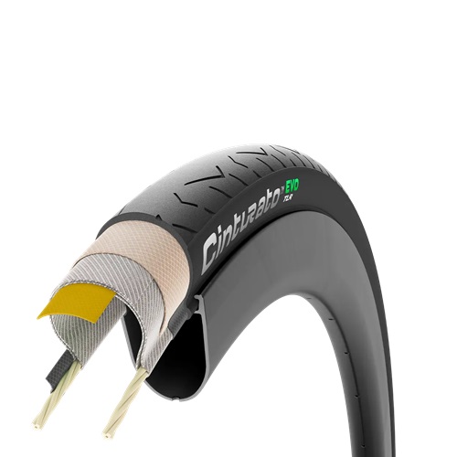 Cinturato™ EVO TLR is the latest evolution of our endurance model, designed to excel in all weather and road conditions. It features the SmartEVO AS compound, an innovative rubber formulation that blends performances such as grip, smoothness and durability, with a percentage of bio-based and recycled materials which is over 50%, with 22% to 23%, depending on the size of the tire, being FSC™-certified natural rubber. This cutting edge compound ensures exceptional grip across all seasons and a multitude of surfaces, while also minimizing vibrations and enhancing comfort and handling as a whole. Its tubeless-ready construction with multiple layers of puncture protection rounds it up, enhancing resilience and enabling the Cinturato™ EVO to let you conquer any path with confidence.